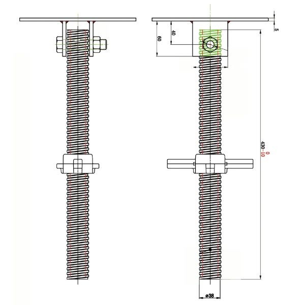 Flat topplatta för båtstötta. Inklusive gängad stång