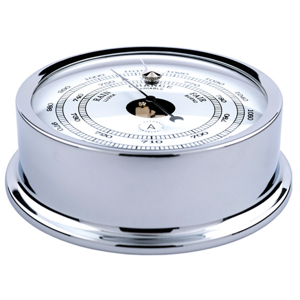 Med en diameter på 120 mm och en vit urtavla ger barometern ett tidlöst och elegant utseende, medan det robusta höljet i förkromad mässing säkerställer lång hållbarhet och motståndskraft mot marina miljöer. Instrumentet är utrustat med en temperaturkompenserad, fullt justerbar aneroidmekanism, vilket garanterar exakta mätningar under alla förhållanden.