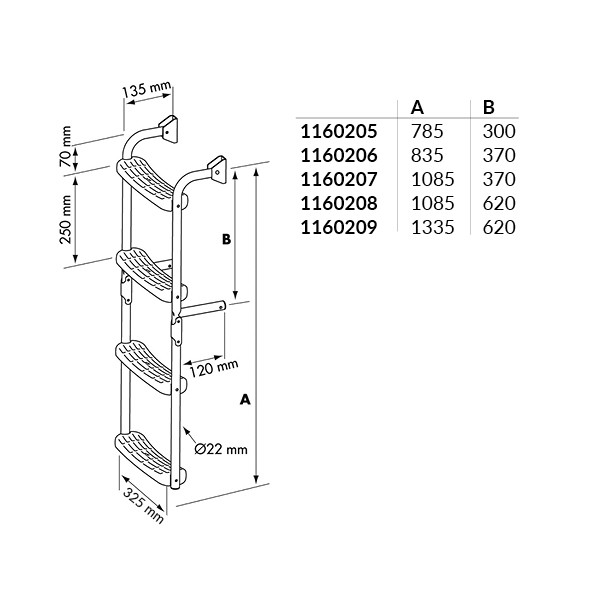 Badstege RF-stål 5 steg 3 + 2.1085 x 620mm nuova rade | Ja | 325,00 mm | 1085 mm | Rostfritt stål | Med 3 fasta + 2 vikbara steg | 2 839 kr |
