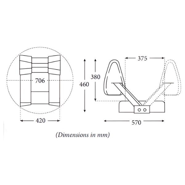Båtstol med rörlig rygg. Kan användas från båda sidorna. Bekväm i båda lägena