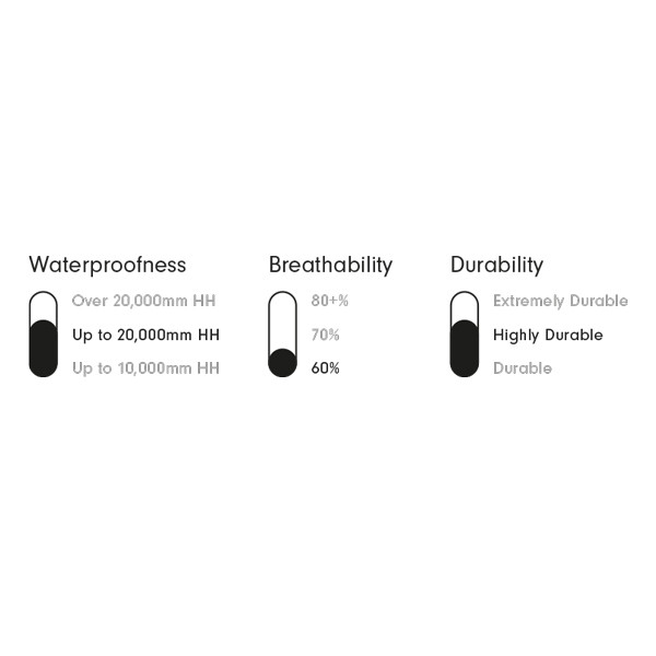 | Vattentäthet | Upp till 20.000 mm HH | ||||||||||||