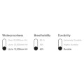 | Vattentäthet | Upp till 10.000 mm HH | ||||||||||||