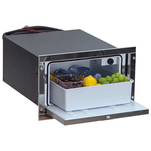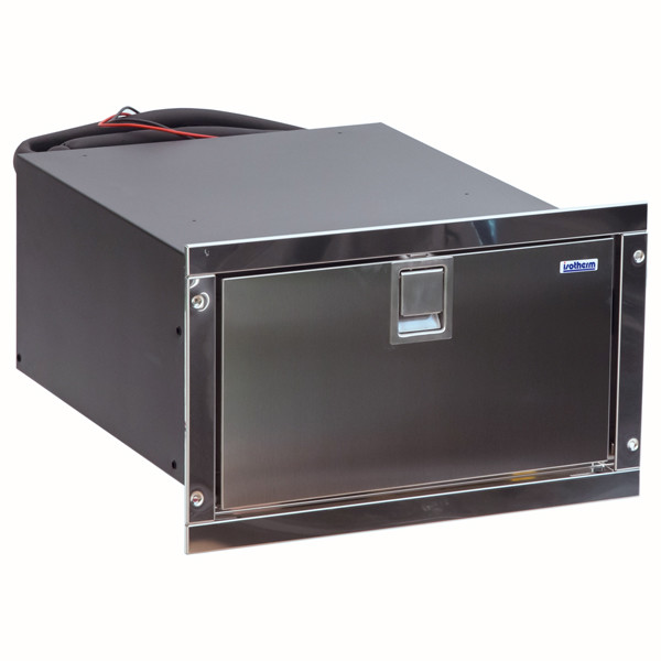 Kyllådan installeras infälld i möbler eller konsoler och levereras med en ram för installation på alla fyra sidor. Den är kompatibel med vanliga 12/24 V elsystem ombord och kan användas i sittbrunnen, skafferiet, hytten eller under sätena.