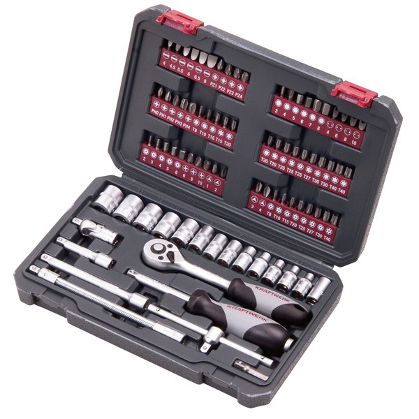 Den stora hylsnyckelsatsen från Kraftwerk består av 82 delar.