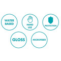 Skaka flaskan och spraya ett tunt lager på ytan. Bred ut produkten med en ren mikrofiberduk. Torka av efter några sekunder tills ytan ser klar och blank ut. Upprepa vid behov för extra skydd eller för större ytor.