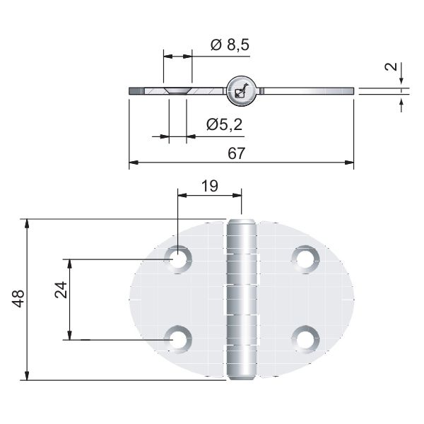 Roca gångjärn ellips RF, 67x48mm