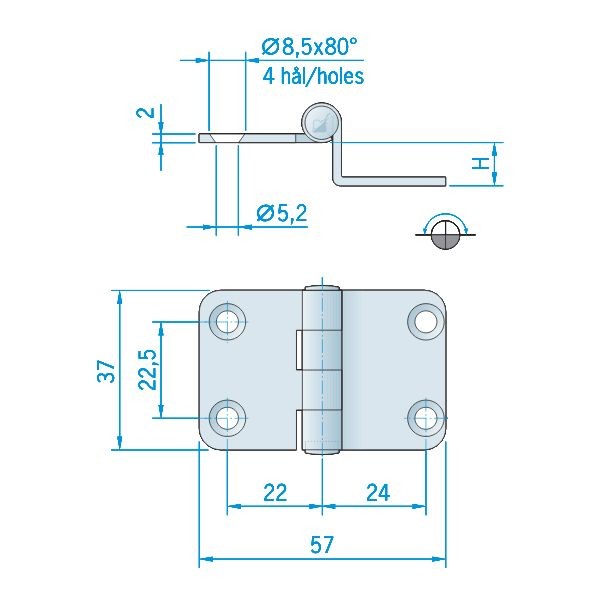 Gångjärn av rostfritt stål AISI 304.