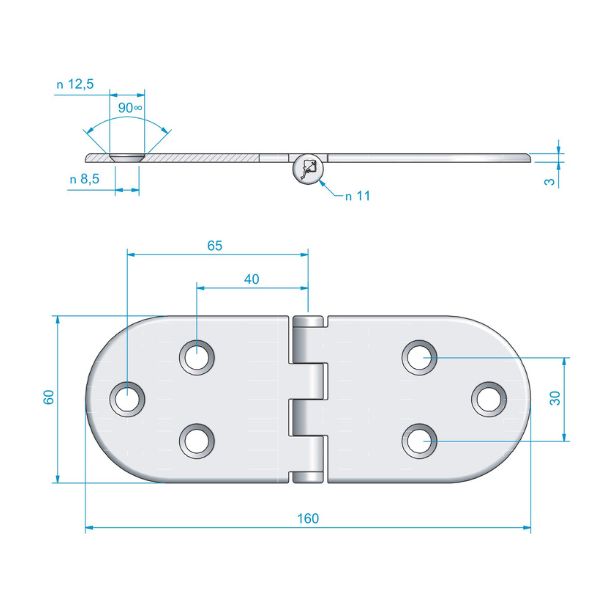 Gångjärn av rostfritt syrafast stål AISI 316. Reverserat/dold knorra.