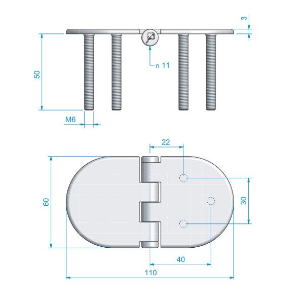 Gångjärn av rostfritt syrafast stål AISI 316. Med fasta M6-skruvar.