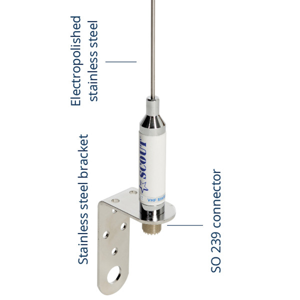 Scout KM-3A VHF stål-antenne 0,9m med aluminium vinkelbeslag