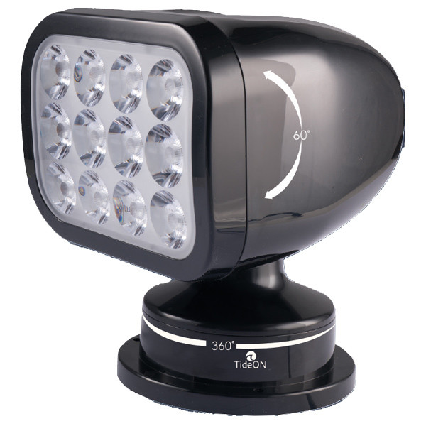 TideON LED-strålkastare med trådlös fjärrkontroll ger flexibel och exakt belysning i krävande miljöer. Med 360° horisontell och 60° vertikal rotation kan du enkelt justera ljusriktningen. Den robusta, vattentäta konstruktionen säkerställer drift under alla förhållanden och levererar ett starkt, klart ljus för både marina och landbaserade uppgifter. Perfekt för båtar, fordon och utomhusbruk.
